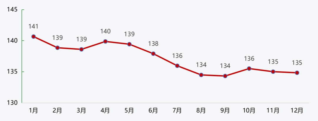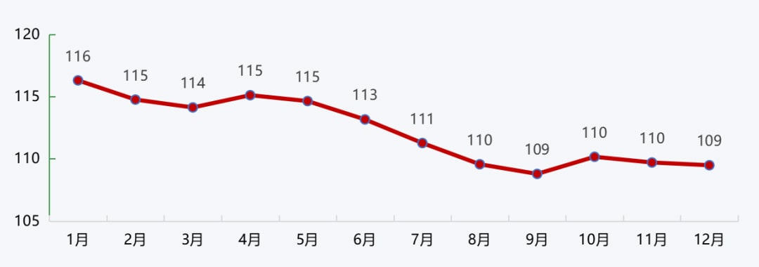沿江城市砂石價格在年初高位運行的基礎上,受到疫情封港、下游需求不佳、沿江運費高企等因素的影響,價格持續回落,進入四季度,隨著施工旺季的到來,需求回升,價格也隨著略有回升。整體來看,2022年沿江港口砂石價格持續回落,12月降至114元/噸,較年初下降3.4%。