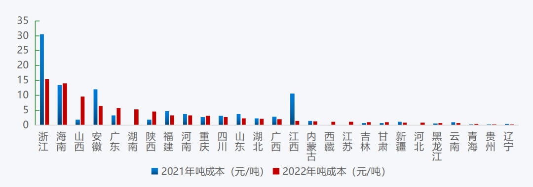 新增砂石礦權出讓成交價方面,浙江、海南新設砂石采礦權出讓成交價分別為15.5元/噸、14.0元/噸,價格居全國前兩位,同比分別下跌49%、上漲4%,而遼寧、貴州等9省新設砂石采礦權出讓成交價在1元/噸以內。